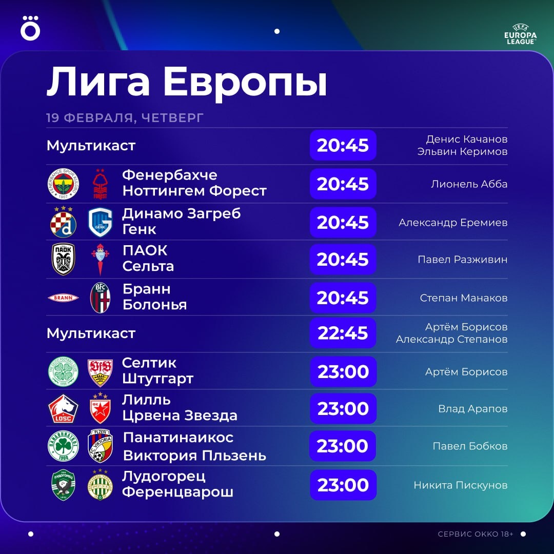 ⚽️ Лига Европы готова принять эстафету. Лови расписание завтрашних матчей: