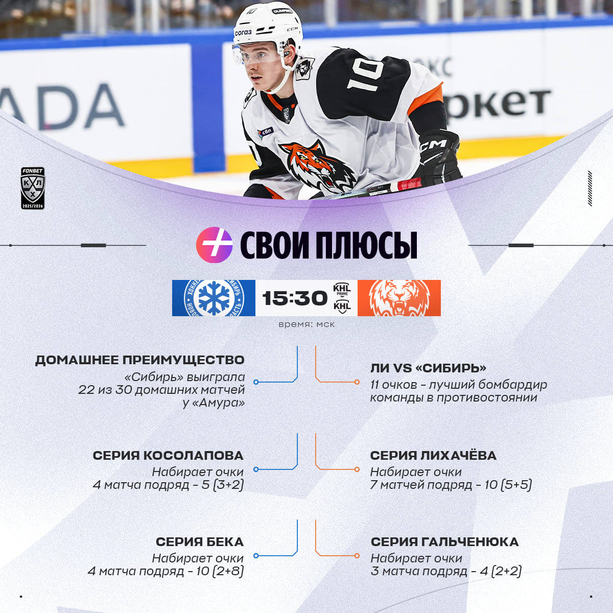 7-матчевая серия Лихачёва 🐯, бомбардир Жаровский 💚, 5-матчевая серия Плотникова ⭐️ — у каждой команды есть Свои Плюсы. Какие из них окажут влияние сегодня?