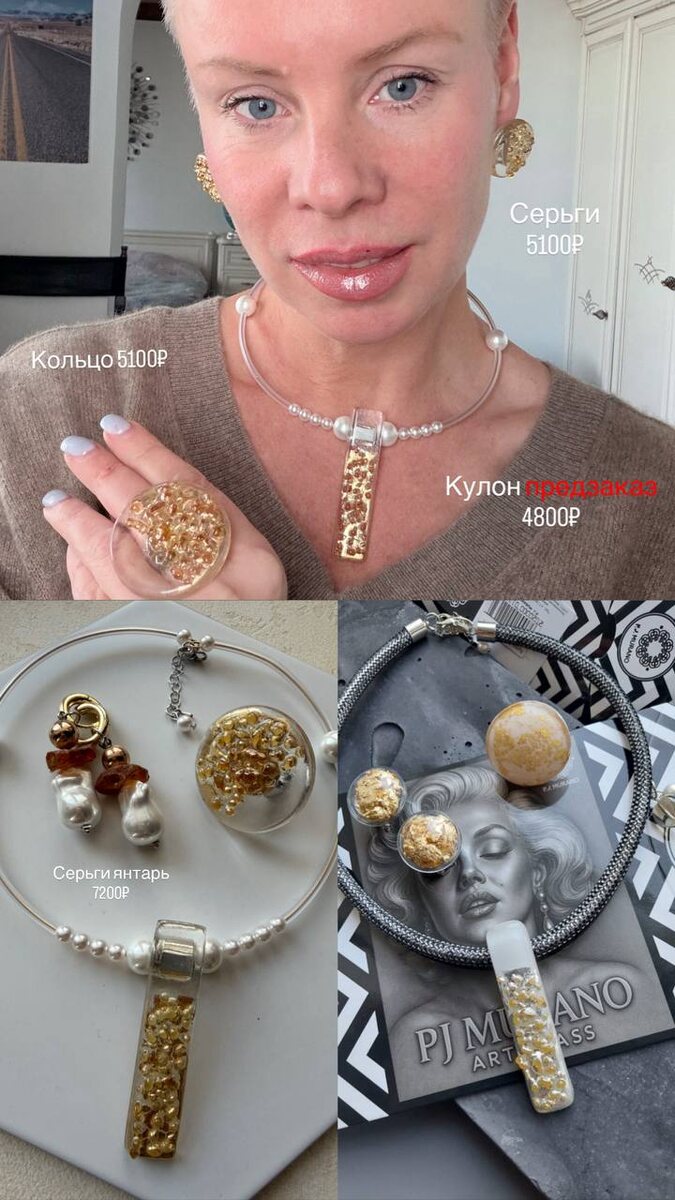 Я влюбилась в финальное сочетание с красным и золотом, а добавление жемчуга и янтаря в комплект напоминает нам о Тихой роскоши и об украшениях, которые не выходят из моды Предзаказ на кулоны Климт 4800₽ (5700₽) Серьги 5100₽ Кольцо 5100₽ Серьги жемчуг, янтарь, 7200₽ Оформить заказ и получить стилистическую консультацию, пишите в @PJ_murano_bot
