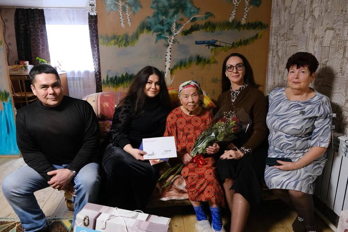 Баузия Нажметдиновна Исхакова родилась в 1928 году. Война изменила судьбу её семьи: отчим ушёл на фронт и погиб, мама осталась одна с двумя детьми. Будущей труженице пришлось рано повзрослеть и начать работать, помогая родным и по хозяйству. Подростком начала работать в колхозе, помогала фронту, несла ночные дежурства. Даже в тяжёлое время находила силы для творчества — участвовала в сельских постановках. В 1950 году она создала семью с Хажитарханом Исхаковым. Супруги прожили вместе более полувека, вырастили четырёх сыновей. Значительную часть жизни именинница посвятила работе почтальоном, добившись открытия отделения связи в Ассадулаево. За труд и инициативность была отмечена наградами. Активной она оставалась и на заслуженной пенсии: участвовала в фольклорном ансамбле «Кызан», занималась рукоделием, бережно хранила традиции родного края. В 80 лет ей присвоили звание почётного жителя села. Сегодня рядом с ней — большая семья: восемь внуков и четырнадцать правнуков. Глава муниципа