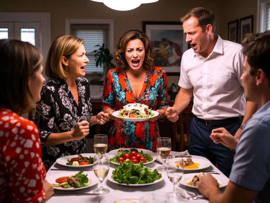 Мой фирменный Салат «Катастрофа» Восьмое марта. 10 утра. Моя кухня напоминает поле боя: на столе — горы овощей, в раковине — горы посуды, а я — в фартуке, который больше похож на полотно абстракциониста (томатный сок, оливковое масло, крошки авокадо). Цель дня — мой фирменный салат «Весенний каприз» (креветки, авокадо, грейпфрут, руккола, кедровые орешки и соус из мёда с горчицей). Я решила, что именно он сделает праздник незабываемым. В 12:00 раздался звонок в дверь. На пороге — сестра Лена с мужем Димой и двумя неугомонными племянниками‑подростками, Артёмом и Катей. — О, пахнет как в ресторане! — восхитилась Лена, стягивая сапоги.