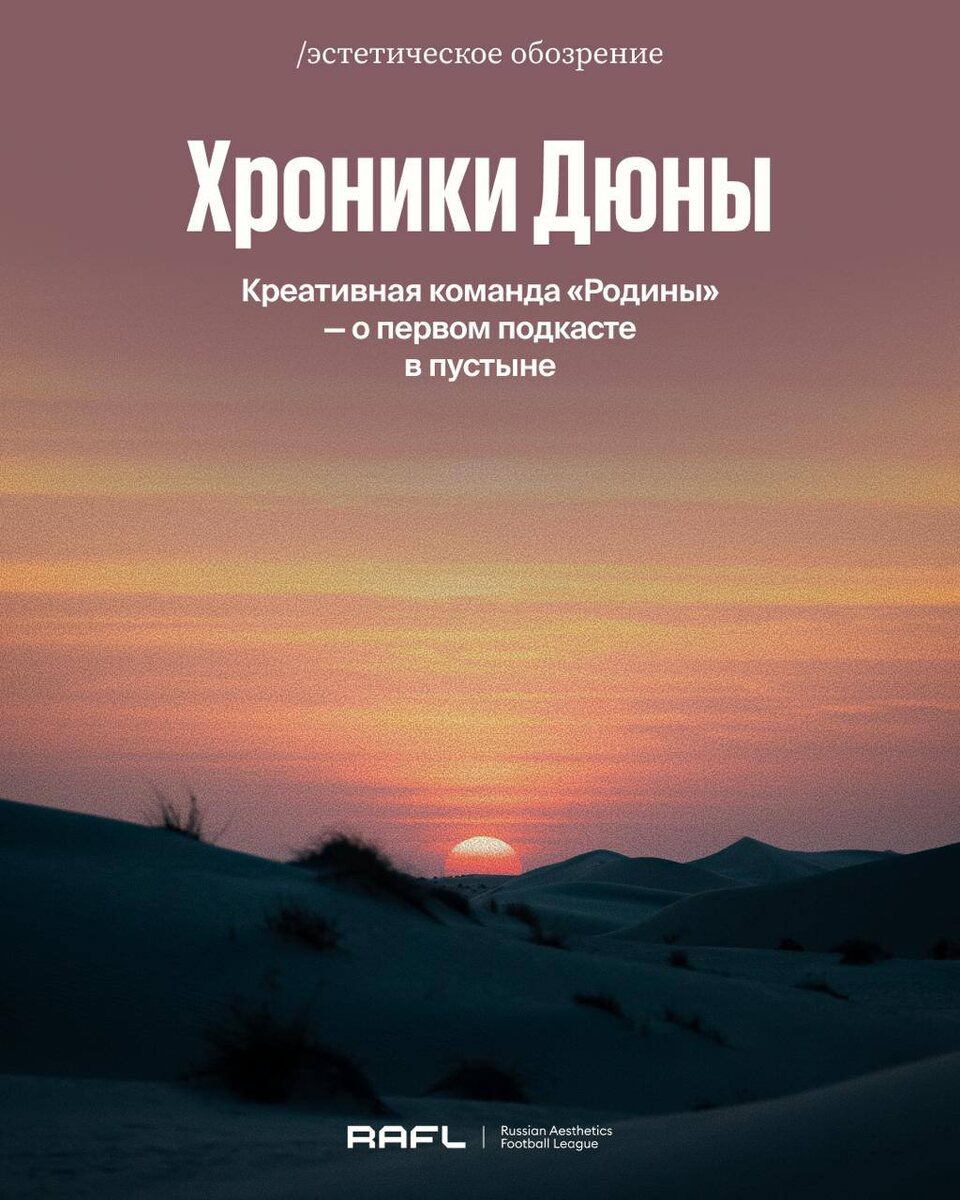 «Родина» записала такой прямо в центре дюны — первой среди футбольных клубов. Клуб предложил зрителю песочный реализм: естественные цвета пустыни и клубный сет-дизайн, создав медитативный эффект В новом выпуске Эстетического обозрения — интервью с креативной командой «Родины» о том, как с помощью визуала рассказать историю, потеряться и найтись в пустыне и силами одного оператора справиться с ветром и кадром