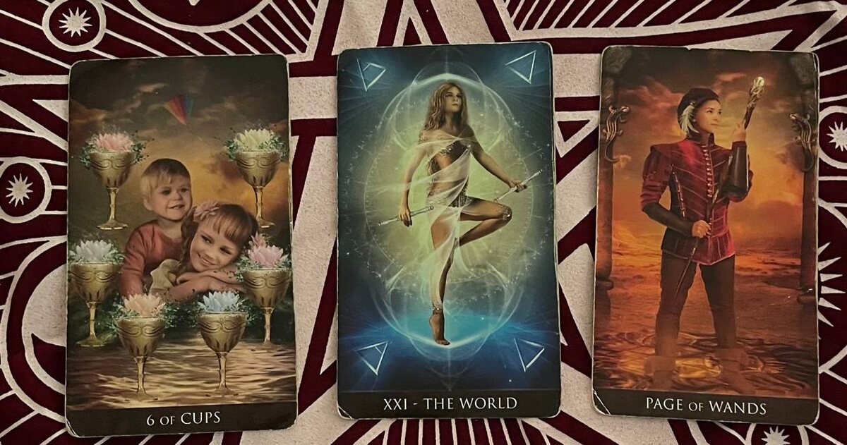 : 1. Шестерка кубков 2. Мир 3. Паж жезлов
