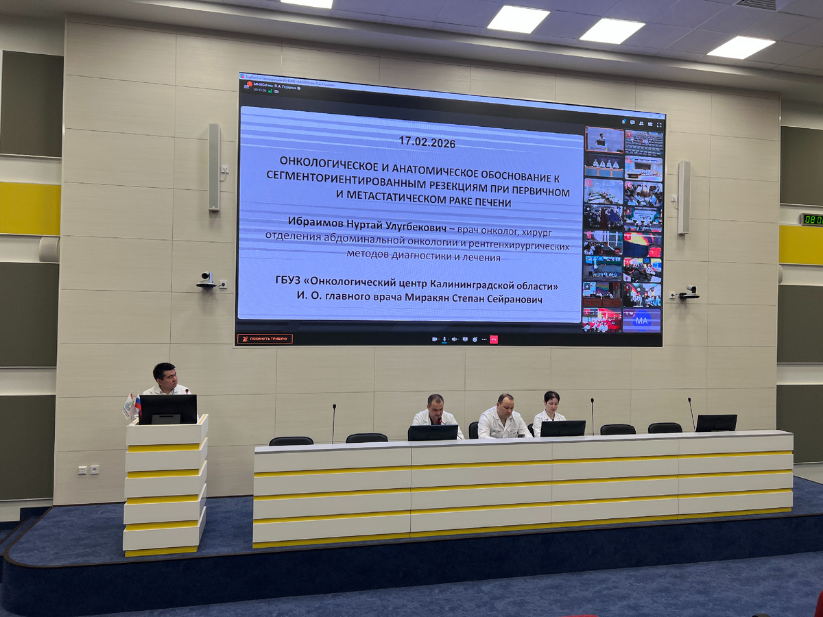 👨⚕️ До начала рабочего дня в онлайн-формате врачи из разных территорий делятся клиническим опытом, обсуждают сложные случаи, представляют собственные наработки и задают друг другу профессиональные вопросы. Такие встречи позволяют синхронизировать подходы к лечению и внедрять лучшие практики в ежедневную работу. 🩺 Конференции проходят под руководством главного внештатного онколога Минздрава России, генерального директора НМИЦ радиологии, академика Андрея Каприна. И о.главного врача Онкологического центра Калининградской области Степан Миракян: "Врачи нашего Центра — не только слушатели, но и активные участники профессионального диалога. На этой неделе с докладом выступил врач-онколог отделения абдоминальной онкологии и рентгенэндоваскулярных методов диагностики и лечения Нуртай Ибраимов. Он представил опыт отделения и рассказал об уникальных наработках в области лечения опухолей печени. Участие в таких межрегиональных форматах — это возможность постоянно развиваться, обмениваться опы