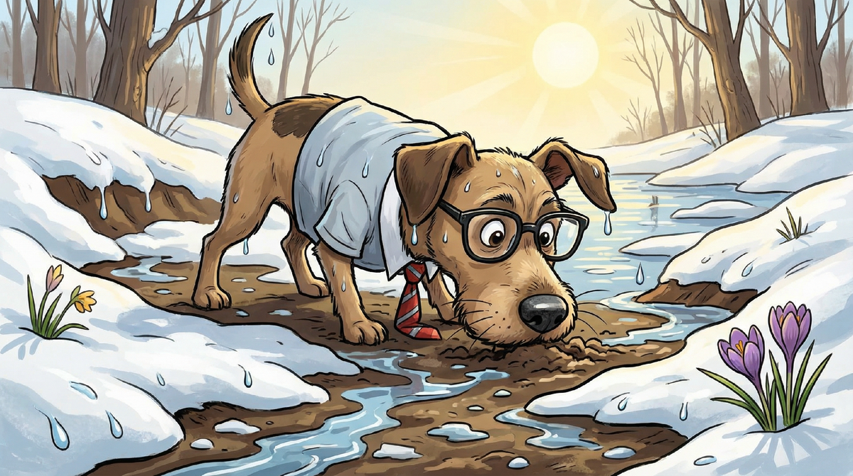 Причем плывут во всех смыслах - мозгом и мыслями в том числе. Хозяева хватаются за голову - их питомцы, как оголтелые, прилипают носопырками к парящей земле так, что не оторвешь. Это явление часто называют "весенним чтением газет" или "проверкой соцсетей". Для собаки весна — это сезон информационной перегрузки. Когда нос собаки сходит с ума, кажется, твои усилия по ее воспитанию сходят на нет. Тающий снег — это всегда что? Правильно! Миллион интересных запахов, а иногда и вкусов. Земля прогревается, влажность повышается, всякие гадости оттаивают. Многие владельцы уже сейчас, в феврале, смогли объективно оценить уровень послушания своего питомца в этих непростых условиях. Зимой холодный и сухой воздух «консервирует» запахи, они распространяются плохо. Весной происходит обратное. Влажный воздух и тающая земля — идеальные проводники для молекул запаха. Обоняние собаки становится в разы острее. Снег тает и обнажает всё, что копилось месяцами: экскременты других собак, гниющие листья, мусо