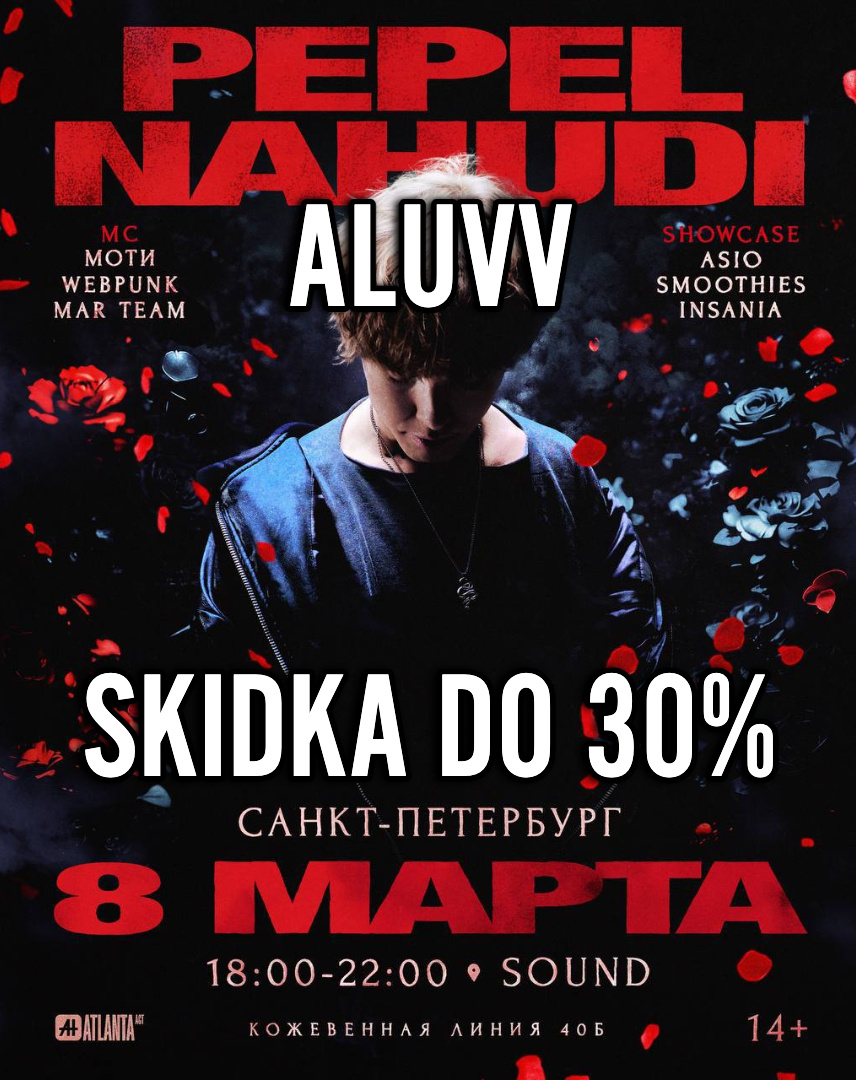 ПРОМОКОД НА КОНЦЕРТ PEPEL NAHUDI 8 марта by Atlanta СПБ 2026 | | Санкт-Петербург - 12 июля | АТЛАНТА ФЕСТИВАЛЬ ПРОМОКОД