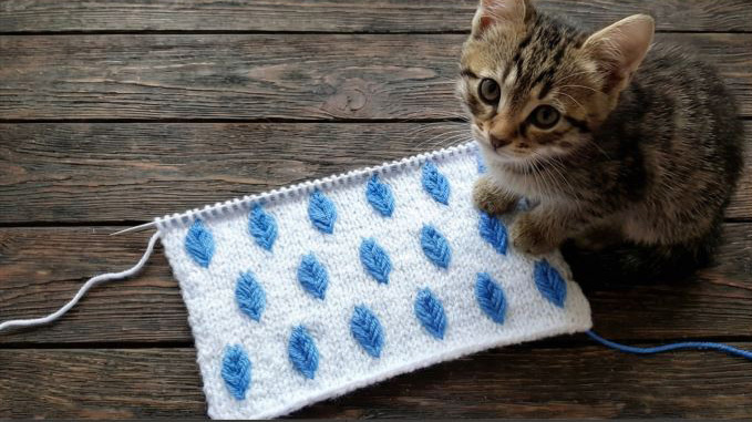 У меня есть отдельная слабость к узорам, которые на расстоянии выглядят как “сложная дизайнерская работа”, а вяжутся так, что можно не откладывать сериал и чай 🙂 Этот как раз из таких: гладкий фон лицевой гладью и объёмные листочки вторым цветом. Листики получаются выпуклые, заметные, а изнанка при этом не превращается в “катастрофу из протяжек” (если нити перекрещивать вовремя 😄). Самый “страшный” момент тут — вытянуть петли из нижних рядов, но на деле это быстро входит в привычку. Раппорт узора: 6 петель в ширину и 20 рядов в высоту. Для поворотного вязания набираю: