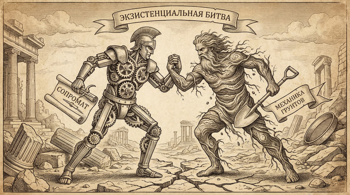 Крайне интересно наблюдать в комментах (почему-то это чаще на ютубе происходит), когда человек приходит и говорит под видео про фундаменты "это сопромат, сынок" или "выучил сопромат, можно жениться". И тут ты сразу понимаешь: человек до сих пор явно не женат... Так вот, сопромат и механика грунтов - это кардинально (принципиально) разные подходы к расчетам. Хотя, казалось бы, все состоит из материи и атомы теже в веществе... К сожалению, нет: нельзя все сводить в такому упрощению. Все дело в том, что все расчеты под собой имеют модели. В 100% случаев эти модели - упрощение. Иногда сильное. Потому что мы пока не в силах создать точную модель расчетную, которая учитывает все и подходит для всего. Пока никак. Поэтому модели существуют разные и для стальной балки и грунта они ПРИНЦИПИАЛЬНО разные в силу огромной разницы в свойствах материала балки и грунта. В первом случае мы имеем дело с жесткой кристаллической достаточно простой решеткой. Во втором со сложным многокомпонентным нетвердым