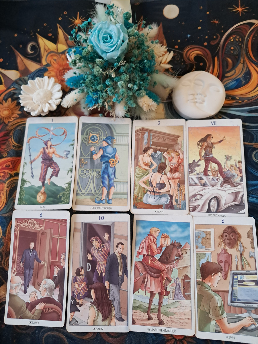 Здравствуйте! Это очень интересный и динамичный расклад. Колода 78 Дверей говорит на языке образов и сюжетов, и ваши карты складываются в историю о человеке, которого наделили универсальной, пробивной силой, но с очень важным условием.