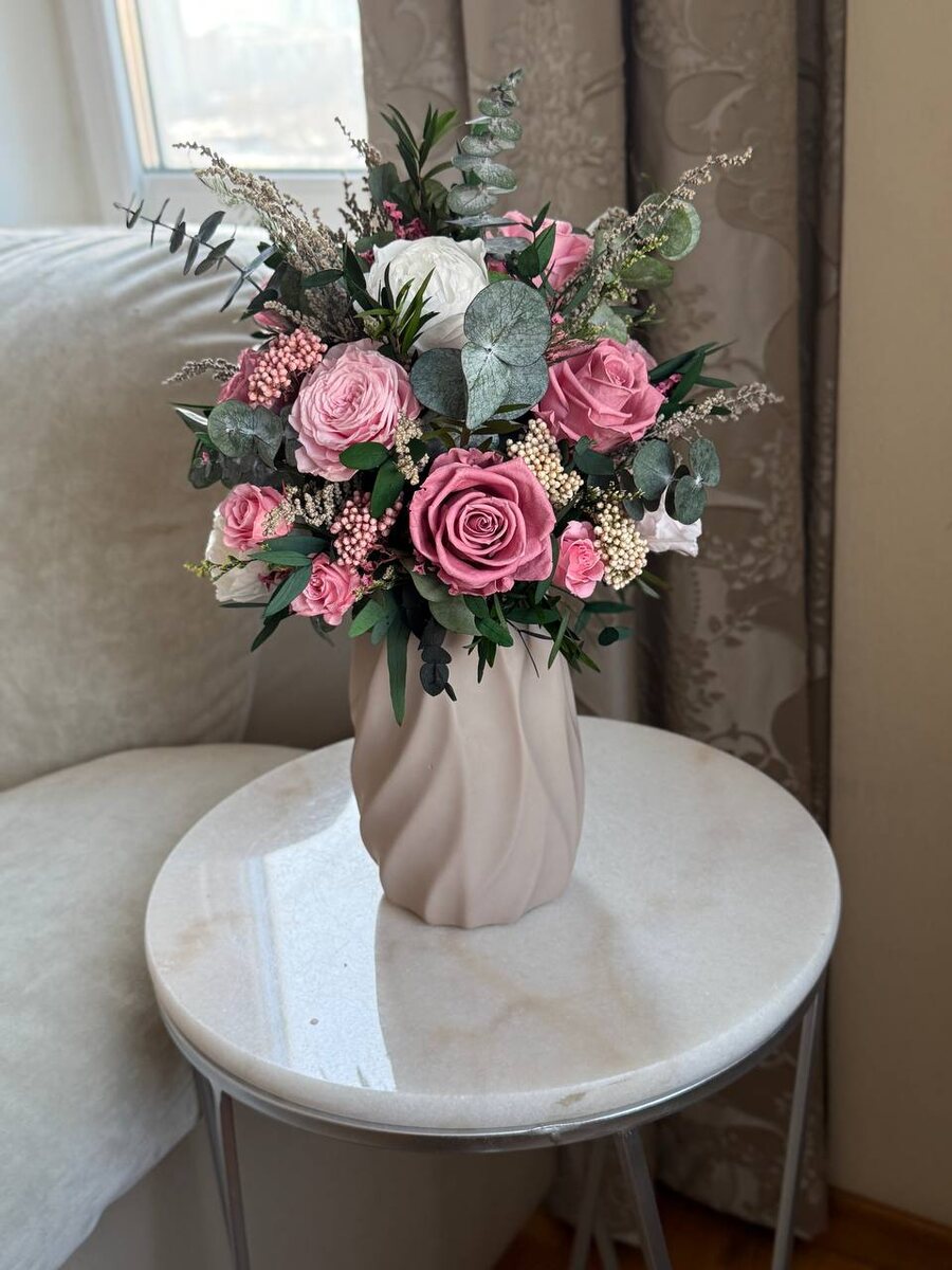 ⚜️Букет из стабилизированных роз «Cherry love» ⚜️Размер: высота 33 см, диаметр 17 см. ⚜️Цена: 14300₽ (ваза входит в стоимость) ⚜️Заказы принимаем @Dostavkaroze