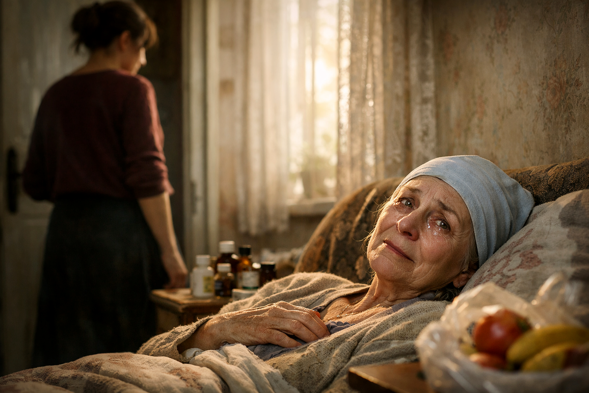 Свекровь лежала на диване, бледная, но живая. Рядом стояли лекарства, стакан воды, пульт от телевизора.