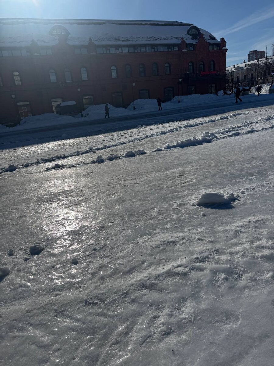 Чтобы пройтись по площади Ленина, кажется, нужно брать с собой коньки — шутят прохожие 😉