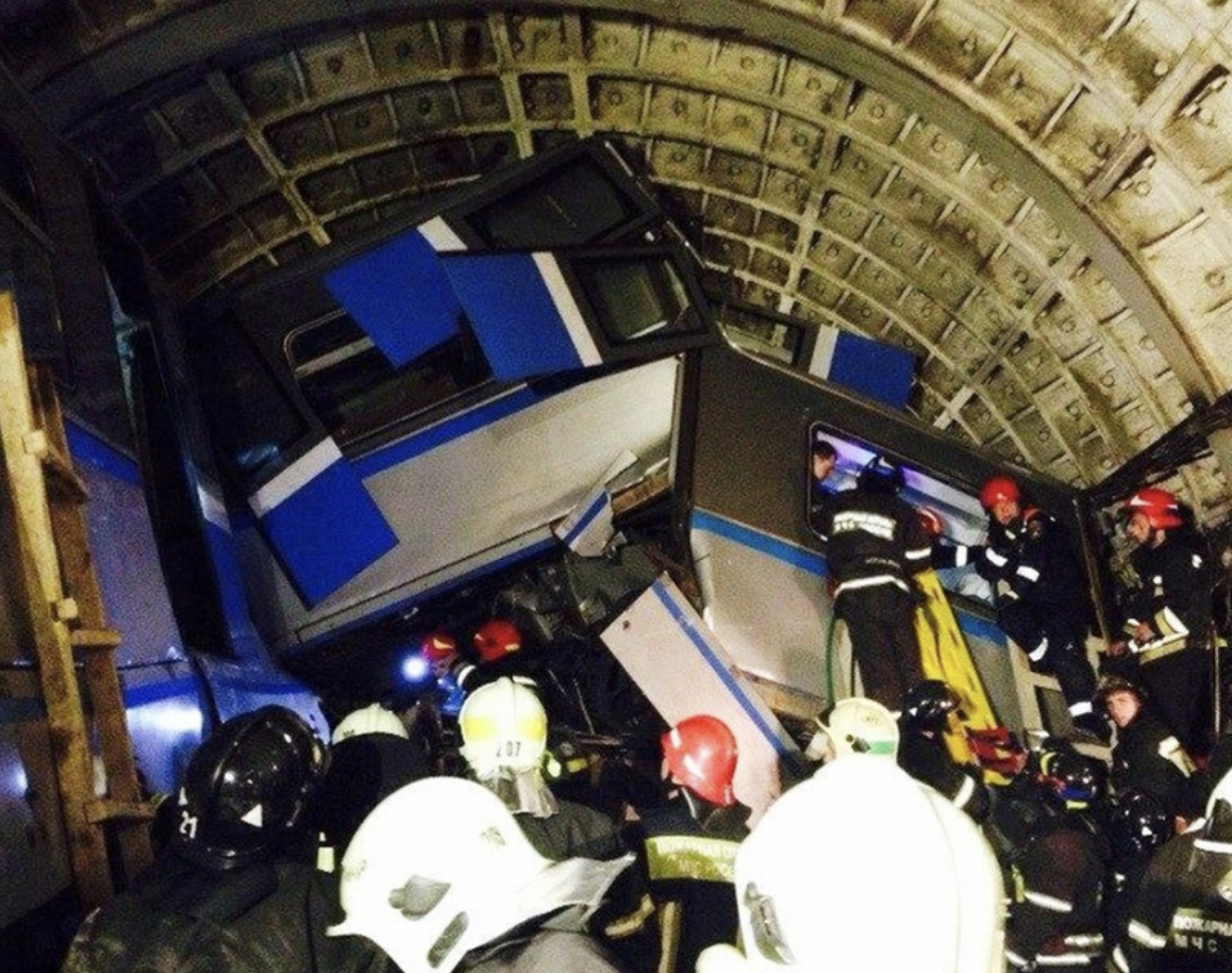 15 июля 2014 года на перегоне между станциями «Парк Победы» и «Славянский бульвар» с рельсов сошел поезд. Погибло 24 человека, пострадал — 271. В первые минуты после трагедии главной версией был теракт. Авария произошла в 8:39 по московскому времени. Поезд "Русич" следовал из центра по направлению к станции "Славянский бульвар" на скорости 70 км/ч, когда три передних вагона сошли с рельсов и столкнулись с поперечной стеной камеры съездов на развилке с техническим тоннелем. Сотни людей застряли в тоннеле, часть из них зажало в деформированных вагонах. Первые спасатели прибыли на место происшествия через шесть минут. Последнего человека достали лишь спустя 13 часов после аварии. За 4 года до этого в Московском метро произошел масштабный теракт, когда сразу в двух поездах на Сокольнической линии сработали взрывные устройства. Поэтому первой версией и в этом случае был терроризм или диверсия. Но никаких подтверждений этому не нашли. Далее следователи начали рассматривать варианты с технич