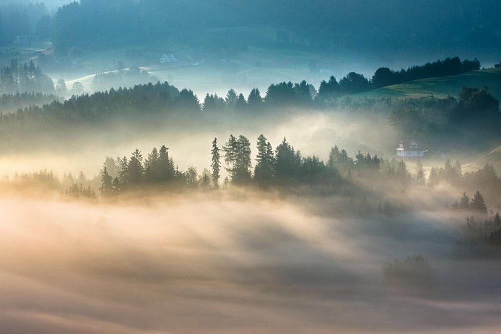 ! Первые лучи солнца и туманный лес. Фотограф: Boguslaw Strempel