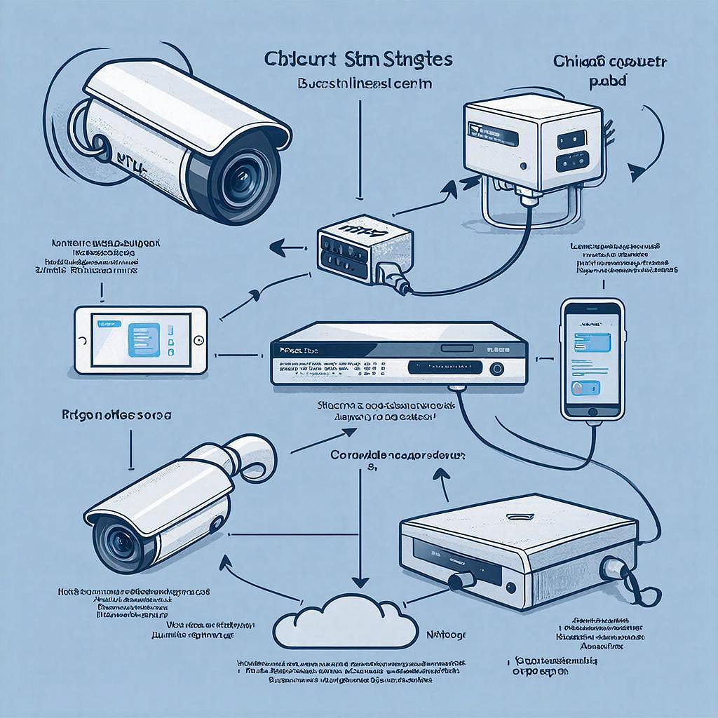 Схема 1: Камера → PoE‑коммутатор → NVR → Router → Интернет. НVR отправляет пуши в облако и e‑mail при детекции. Схема 2: Камера (P2P) ↔ Облачный сервис ↔ Мобильное приложение. Быстрая для домашних камер. Схема 3: Камера → Локальная сеть → VPN → Удалённый клиент. Рекомендуется для бизнеса.