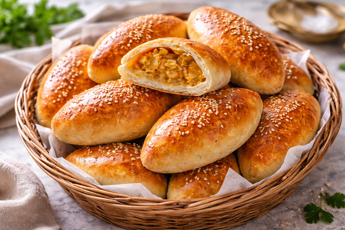 - Пирожки заметно увеличились в объеме во время выпечки, что говорит о правильной работе теста.