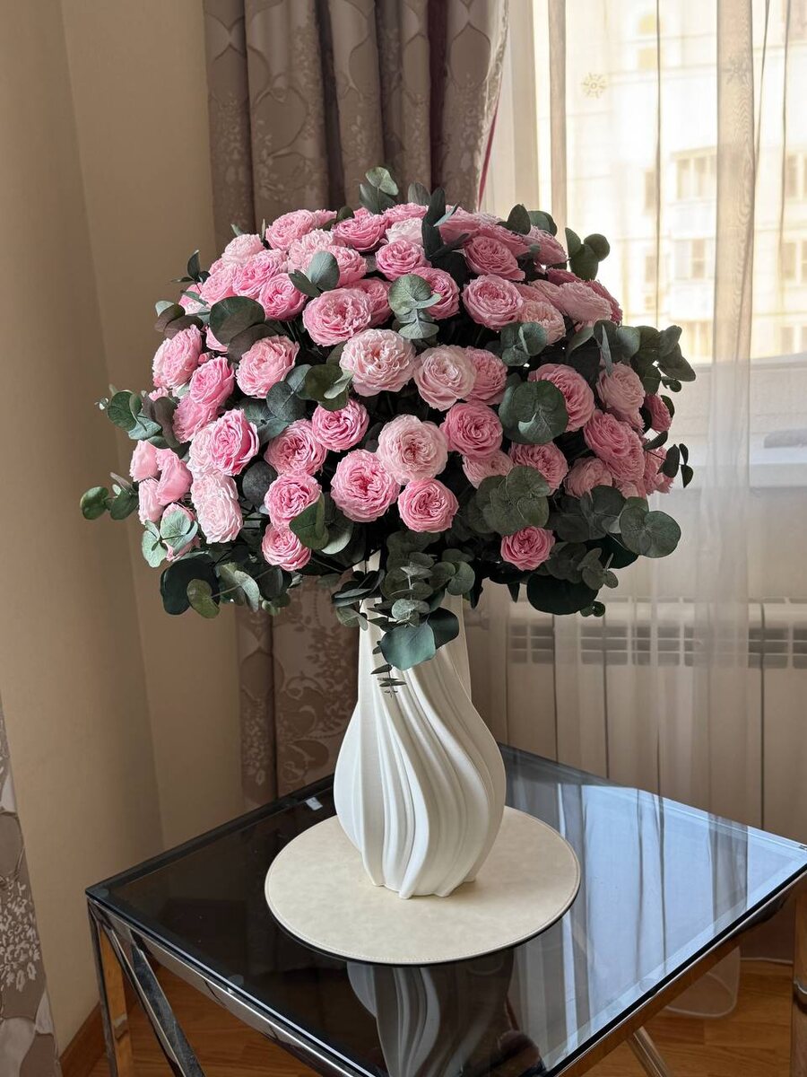 ⚜️Пышный букет из стабилизированных кустовых роз «Pink haze» ⚜️Размер: высота 65 см, диаметр 45 см. ⚜️Цена: 75000₽ (ваза входит в стоимость) ⚜️Заказы принимаем @Dostavkaroze