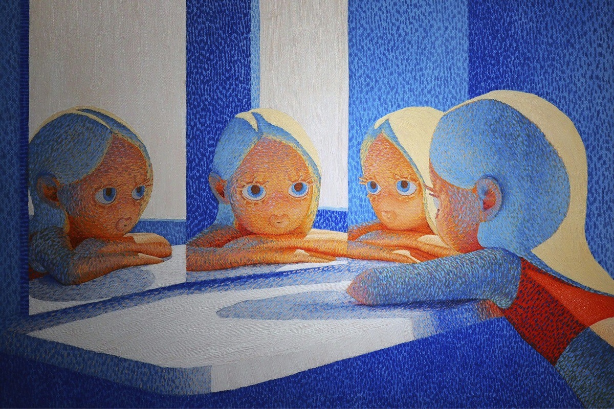 Героиня картин Нины Сечко потерялась в параллельной вселенной или во сне, на что указывает её одежда и босые стопы. В одной из картин она вглядывается в многосоставное зеркало — символический портал между мирами. Традиция закрывать зеркала в доме покойного (от иудаизма до славянского фольклора) основана на вере в то, что душа может заблудиться в зазеркалье или «открытая дверь» позволит духам иного мира проникнуть в наш. Возможно, маленькая девочка как раз и является такой заблудшей душой. В одном из произведений — угловом зеркале с рисунком — она буквально смотрит на зрителя с другой стороны. Художница напоминает, что «неотмирное» творческое начало живёт в каждом человеке. Необходимо лишь разбудить его в себе, чтобы стать художником — современным жрецом вечных истин и духовных ценностей. Читать далее...