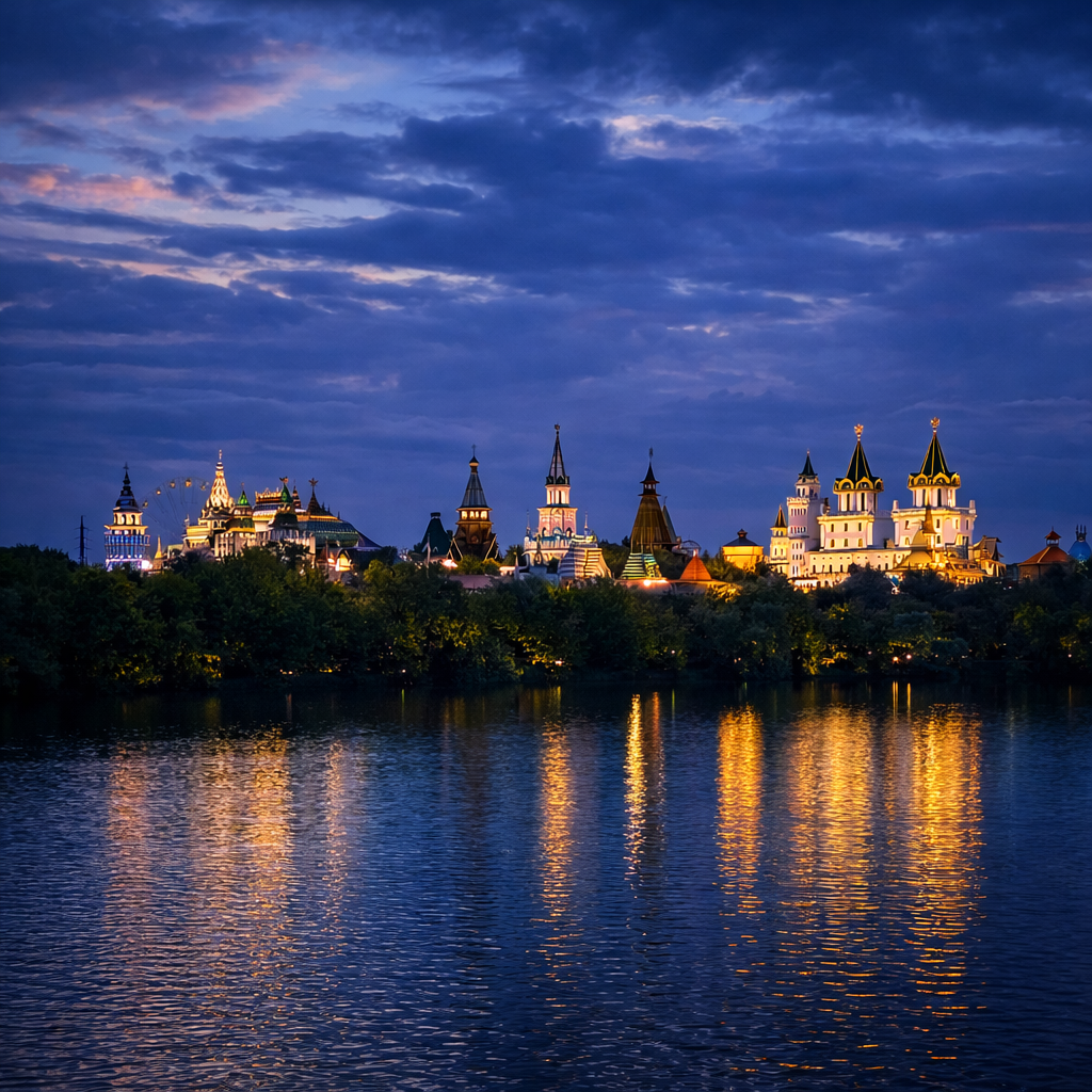 На первый взгляд здесь все похоже на ожившую открытку: башенки и пестрые фасады, будто собранные из книг по древнерусской архитектуре. Парадокс в том, что исторически на этом месте никакого кремля не было. Настоящее царское Измайлово с усадьбой и прудами действительно находится неподалеку, но это совершенно другая история.
