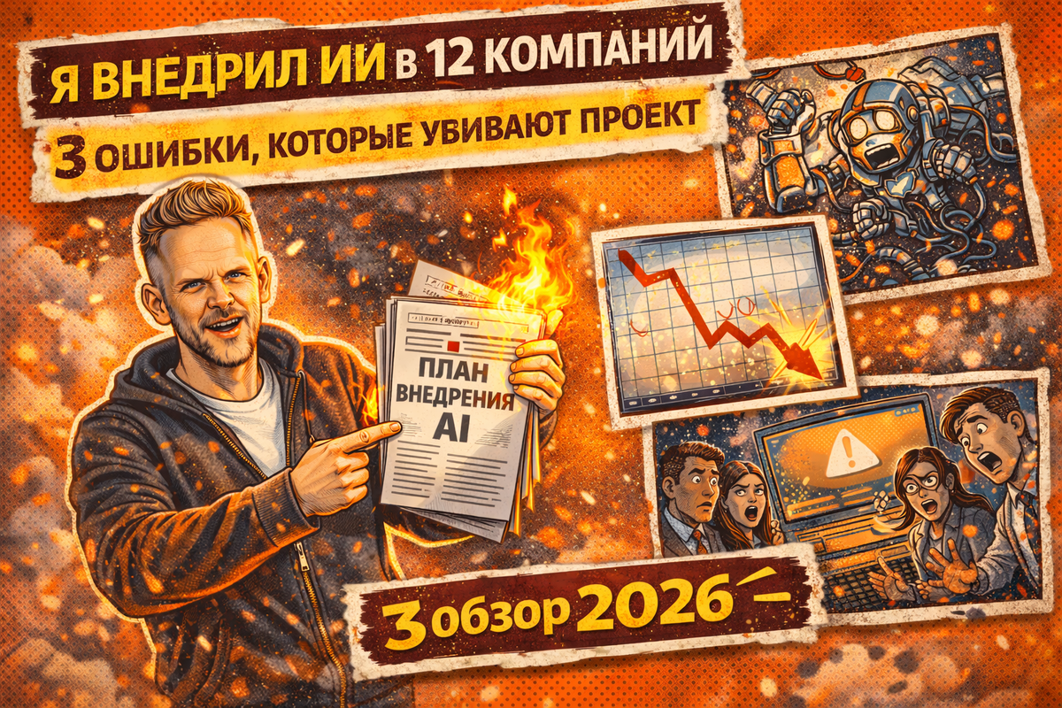 Предприниматели приходят ко мне с горящими глазами: «Хочу ИИ». Я спрашиваю: «Зачем?» — и половина не может ответить. За последние два года через AINEX LAB прошло больше десятка проектов внедрения искусственного интеллекта в бизнес. Разные города, разные ниши — розница, услуги, производство. И знаете что? Одни и те же грабли. Из раза в раз. Сегодня я не буду рассказывать, какой ИИ «самый лучший». Я расскажу о трёх ошибках, которые стоили моим клиентам денег, нервов и времени. Чтобы вы их не повторили. Самая частая и самая дорогая ошибка. Владелец небольшой сети автосервисов позвонил мне в прошлом году: «Артём, сделай нам чат-бот с ИИ». Я спросил: «Какую проблему решаем?» Он говорит: «Ну как, это же модно, все внедряют...» Мы провели аудит. Оказалось, настоящая боль — менеджеры по 40 минут тратили на составление одного коммерческого предложения вручную. Чат-бот здесь вообще ни при чём. Решение: настроили автоматическую генерацию КП через ИИ прямо в amoCRM. Теперь КП готово за 3 минуты.