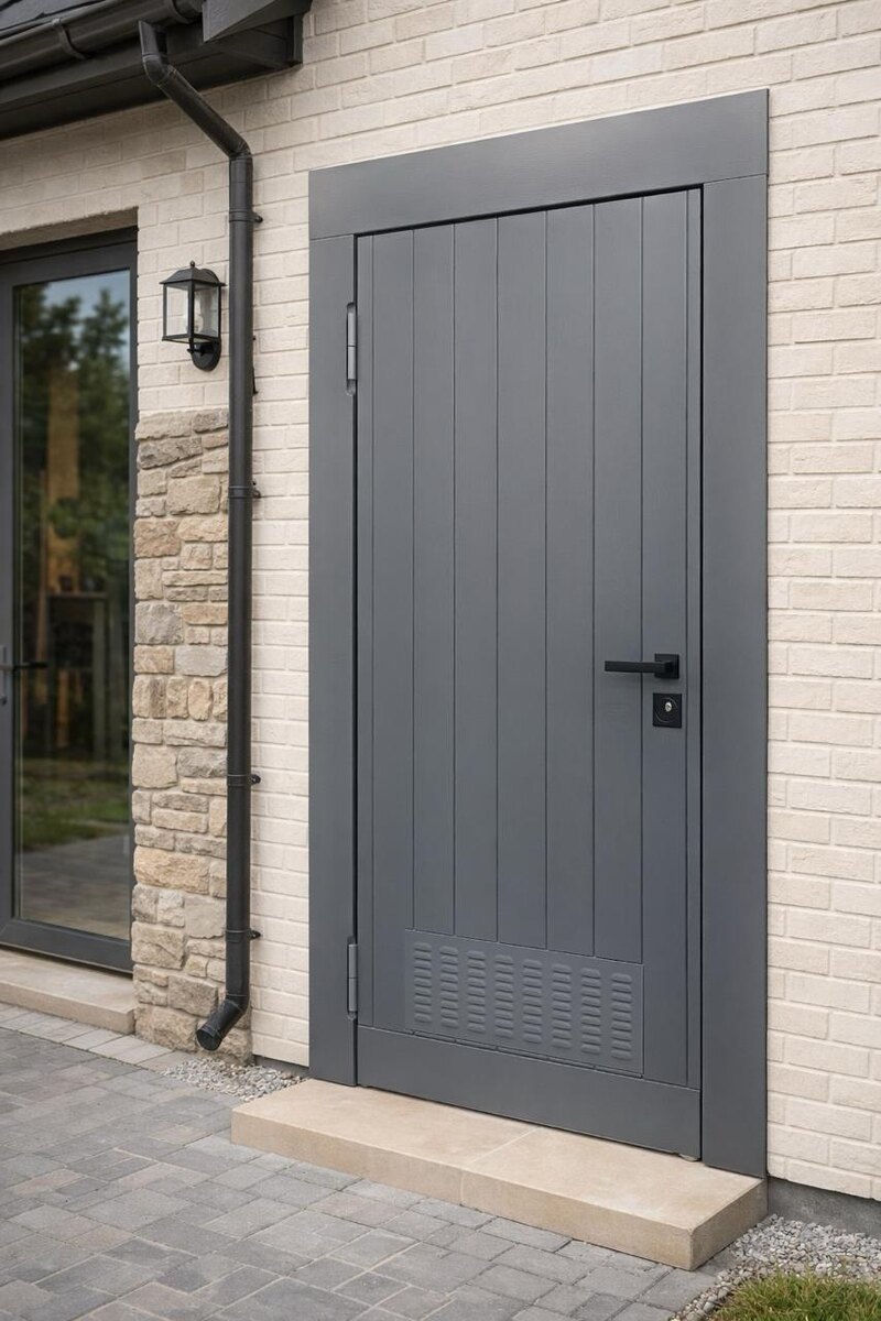 Это дверь в газовую котельную. Потому что пока она не установлена, газовые службы не выполнят пуско-наладочные работы. А значит — в доме не будет ни газа, ни тепла. Но здесь многие совершают ошибку 👇 Покупают обычную металлическую дверь, не учитывая обязательные требования к котельным. А ведь такая дверь должна: ✔️ иметь приточную вентиляцию для поступления свежего воздуха к газовому оборудованию ✔️ при необходимости быть оснащена дополнительным остеклением (если площади окна не хватает до нормы) ✔️ соответствовать требованиям, которые рассчитываются исходя из мощности котла и объёма помещения И ещё один важный момент: Если вход в котельную расположен рядом с главным входом в дом — дверь должна совпадать по дизайну с будущей основной входной дверью. Но как быть, если дверь в котельную нужна уже сейчас, а входную дверь заказывать ещё рано? Мы заранее: — делаем замеры всех проёмов — согласовываем дизайн обеих дверей с уличной стороны — устанавливаем дверь в котельную сейчас А когда вы б