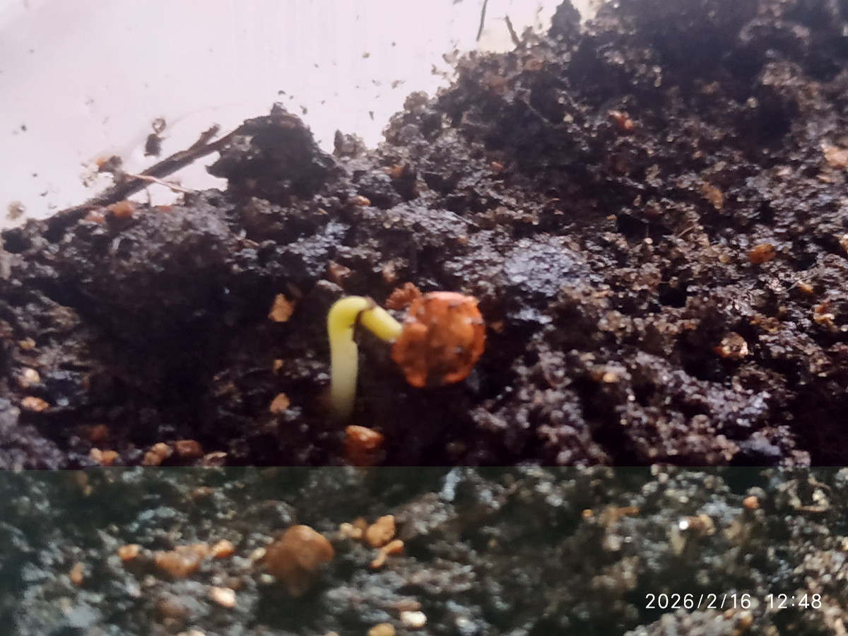 Когда долгожданные всходы появляются в "шапочках", это их не красит. Растениям плохо, но не критично. Раньше, когда начинал сеять семена, то у меня часто томаты показывались в «шапочках», и их называли «космонавтами». Теперь я стараюсь делать всё правильно, но иногда бывает. Такие головные уборы появляются из-за рыхлой земли, плохого её уплотнения, неглубокой посадки, семена могли быть пересушены и плохо набухли, да причин много можно найти. Поэтому для предотвращения таких случаев семена обрабатываю аптечной перекисью, и оболочка становится мягче, и заодно дезинфицируется. И таких случаев стало гораздо меньше. Но такое встречается с семенами, обработанными производителем. Их же не положено замачивать и дополнительно стимулировать. Именно с этим семечком перца «Клаудио» и произошёл такой случай. Он провёл недостаточно времени в моём инкубаторе при проращивании. Поторопился я. Когда увидел, что из земли показалось красное семечко, я накрыл его влажной ваткой и затем дополнительно увлаж