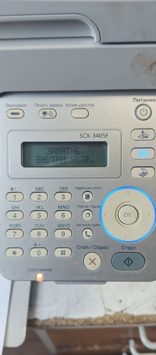 В наш сервис попал Samsung SCX-3405 с необычным поведением. Первая страница печаталась нормально, а на второй происходило замятие. Аппарат загорался красным и писал: «Замятие внутри устройства». Что мы заподозрили Такое поведение часто указывает на проблему с датчиком прохода бумаги. Когда лист выходит, датчик должен возвращаться в исходное положение, чтобы сообщить аппарату: «Всё чисто, подавай следующий». Если этого не происходит, принтер думает, что бумага порвалась и застряла внутри. Разбираем — и точно: пружинка датчика слетела. Флажок болтается, не возвращается. Казалось бы, классика: ставим пружину на место, чистим ось, смазываем — и дело в шляпе. Но откуда взялась проблема? Выяснилось, что незадолго до этого клиент самостоятельно вытаскивал застрявший лист. И, скорее всего, дёрнул его неправильно, зацепив датчик. Откуда взялось замятие? А вот тут самое интересное. Виновник найден В аппарате стоял китайский совместимый картридж MLT-D101 (та самая универсальная модель, которую вы