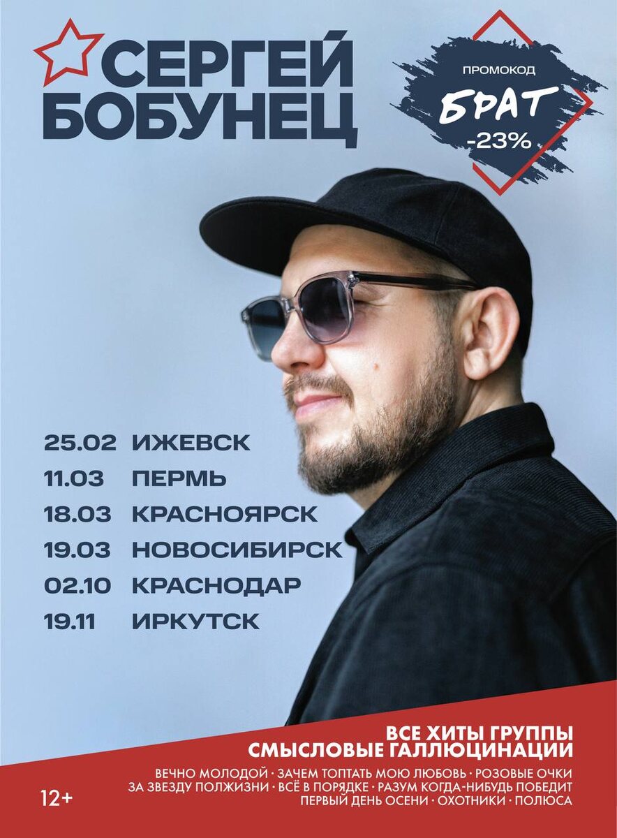 Промокод «БРАТ» даёт скидку -23% при покупке от 2-ух билетов на концерты: