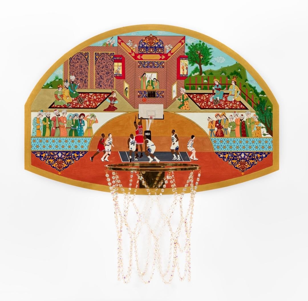 «Последний бросок» Майкла Джордана на щите, выполненном в стиле персидской миниатюры. Работа иранского художника и баскетболиста Мухаммада Джамшиди.