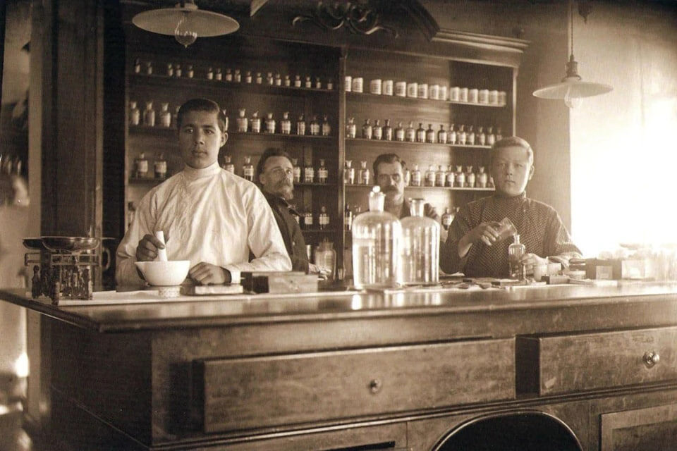 Здесь продавали уже не «зелье», как в зеленных рядах, а настоящие лекарства — по рецептам и по науке.