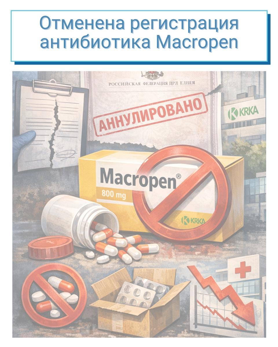 Минздрав официально отозвал регистрационное удостоверение (РУ) у известного антибиотика «Макропен» (Macropen) производства словенской компании Krka. Информация появилась в Госреестре 9 февраля 2026 года. 🔹 Отмена регистрации касается таблеток 400 мг в пленочной оболочке.