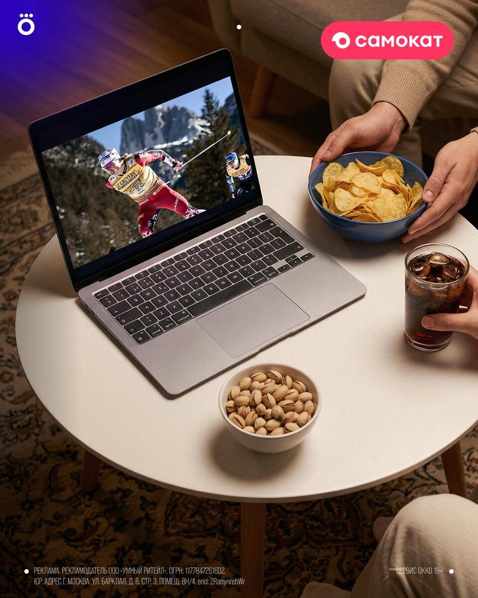 Трансляции сменяют друг друга, и на всё нужны силы! Самокат привезёт готовую еду, сладости к чаю, закуски и напитки, а вы не пропустите ни одной секунды эфира. Приятного просмотра 😃