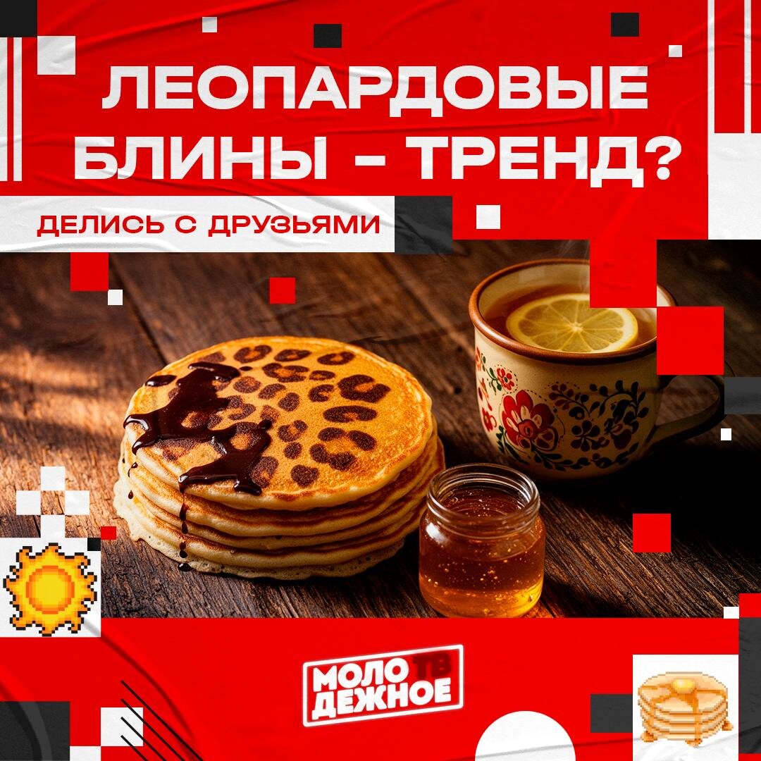 🤩🤩🤩🤩🤩🤩 🥞В Масленичную неделю в Клину появились блины с леопардовым рисунком — новый гастрономический хит Подмосковья. 🍫Узоры создают, используя тесто разных оттенков: часть окрашивают какао, формируя пятна от светло-коричневого до шоколадного. На разогретую сковороду наносят темные и светлые пятна, потом заливают светлым тестом. После жарки блины получают контрастный узор, похожий на леопардовую шкуру. 🔝Леопардовые блины стали масленичным трендом Подмосковья и подаются с медом, вареньем или сгущёнкой. 🤩 МЫ В ВК | 🤩 МЫ В MAX #клин #клинзвучит #молодежноеТВ
