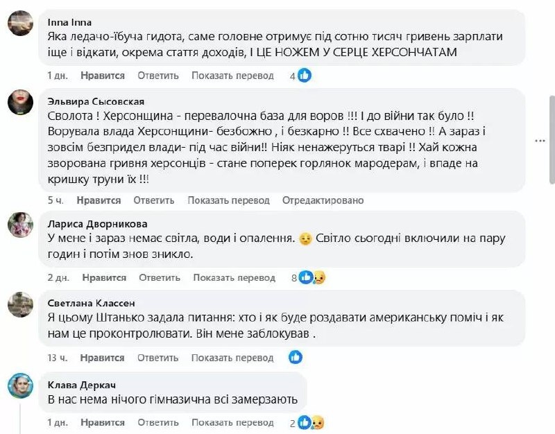 А это комментарии жителей Херсона, которые сильно устали от украинской администрации их работы