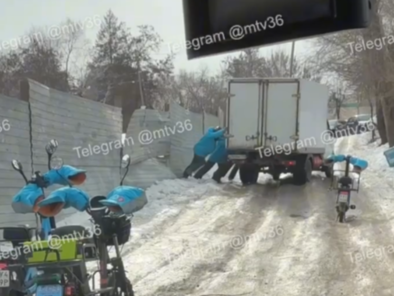 Воронежские курьеры-самокатчики спасли застрявшую в ледяной колее газель на Московском проспекте. В Воронеже курьеры пришли на помощь водителю грузовика, который не смог самостоятельно преодолеть обледенелый подъем. Импровизированная спасательная операция развернулась на Московском проспекте и попала на видео. Инцидент произошел у дома №45б, где газель застряла в глубокой ледяной колее на подъеме дороги. Колеса грузового автомобиля безнадежно буксовали на скользком покрытии, не давая водителю тронуться с места. Ситуация, знакомая многим автомобилистам в период зимней непогоды, могла обернуться долгим ожиданием эвакуатора, если бы не неравнодушные прохожие. Очевидцами происшествия стали местные курьеры, которые в этот момент находились неподалеку. Шестеро молодых людей в одинаковых рабочих куртках, некоторые даже были с термосумками, пришли на помощь. Рядом с местом событий были припаркованы их скутеры и велосипед. Курьеры уперлись руками в боковой борт автомобиля и синхронно вытолкали