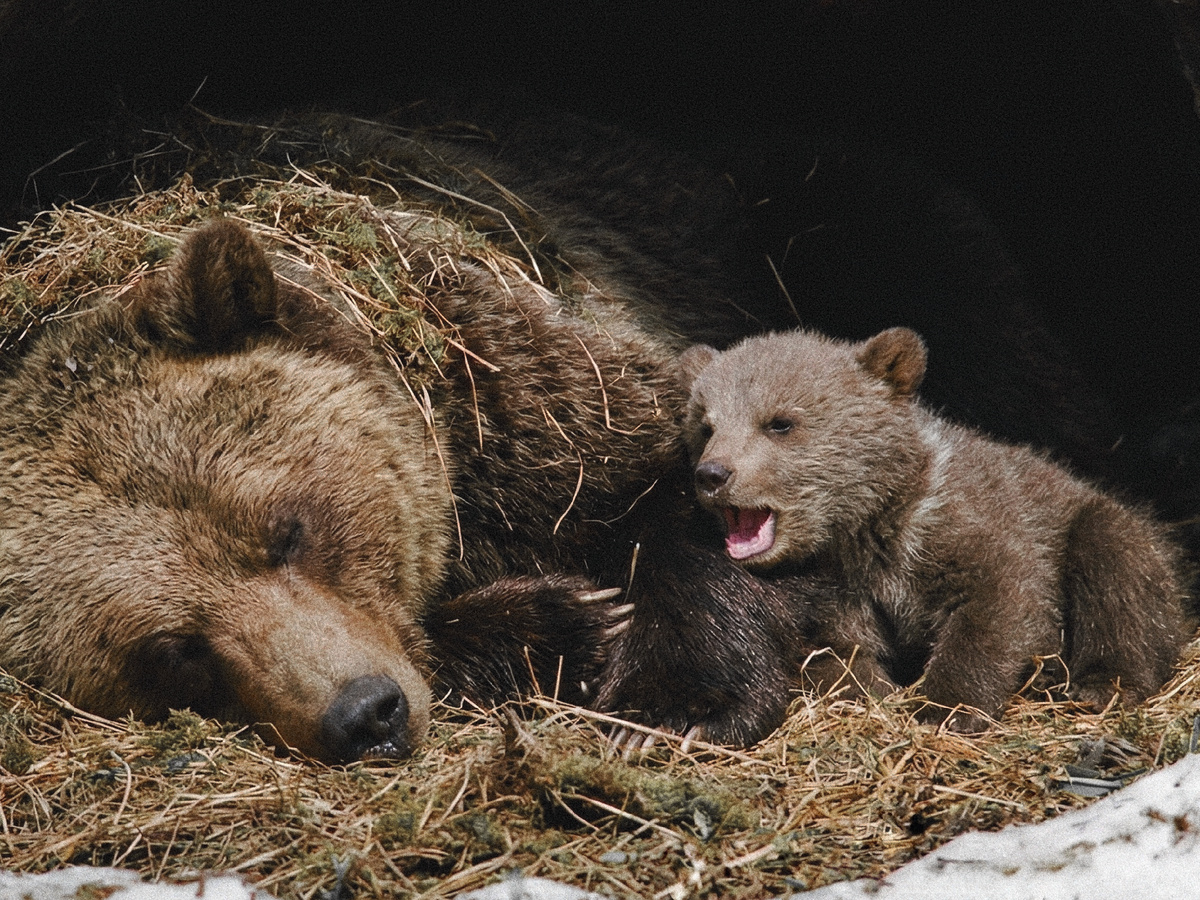 Когда медведица искала любовь, мать предупреждала: ищи ответственного и заботливого, иначе принесёшь в подоле! Но кто же в пубертате во всём слушается старших? Гормоны посильнее светлого разума. Чтобы не сильно влетело, беременная медведица прячется в берлогу, где во время холодов производит на свет потомство. Сама посапывает, а медвежата на ощупь ищут пропитание и постепенно откармливаются до размеров детсадовца.