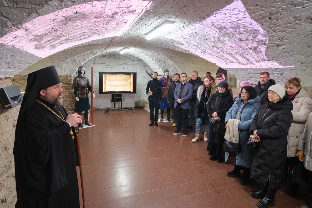 15 февраля 2026 года в Староладожском Никольском мужском монастыре состоялось открытие обновленной мультимедийной экспозиции Мемориального музея народного ополчения. Это первое событие в череде мероприятий, посвященных празднованию 785-летия обители. Концепция музеефикации пространства разработана обществом «Родной край» совместно с монастырем при поддержке Президентского фонда культурных инициатив. «Наш музей – символ русского духа, – сказал настоятель игумен Филарет (Пряшников). – На протяжении веков Русь рождала достойных сыновей и дочерей, которые шли защищать Родину, часто отдавая жизнь, защищая мир, благоденствие близких. Мы любим свою землю, Отечество. И я надеюсь, что люди, которые будут приходить сюда, приплывать на кораблях и приезжать на автобусах, еще раз вспомнят о наших защитниках – тех, кто когда-то защищали Русь, и тех, кто сегодня продолжают защищать нас от неприятелей. Радостно, что наш монастырь привлекает множество паломников и туристов. Экспозиция послужит для благ