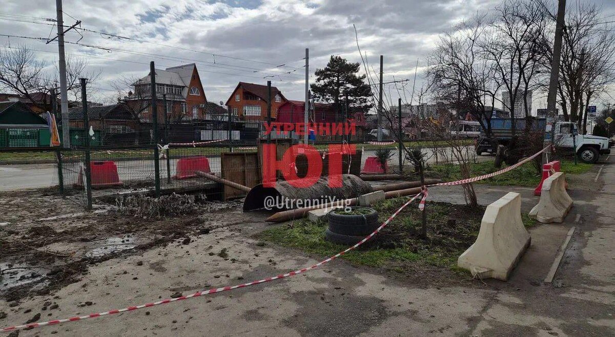 Движение на улице Садовой в Краснодаре из-за обрушения грунта над коллектором. Корреспондент «Утреннего Юга» побывал на месте провала 18 февраля. На улице Садовая частично ограничили движение транспорта из-за провала грунта, образовавшегося рядом с палисадником жилого дома. Полностью перекрыта противоположная сторона улицы — там специалисты ведут раскопки коллектора и параллельно проводят работы на линии электропередачи. В результате автомобилистам приходится двигаться только по одной стороне дороги (видео). По данным администрации Краснодара, обрушение грунта образовало яму глубиной около шести метров. Вокруг провала установлена защитная конструкция, которая должна предотвратить дальнейшее разрушение трубопровода и исключить возможное загрязнение территории сточными водами. Завершить восстановительные работы планируется до субботы, 21 февраля, при условии отсутствия осложнений. Судя по масштабам раскопок и крупным трубам, замена коллектора может затронуть обе стороны улицы. Напомним,
