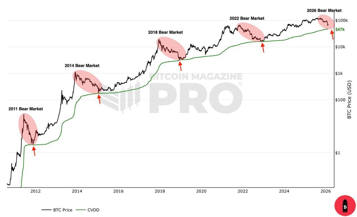 На каждом медвежьем рынке #BTC тестирует цену CVDD, и она выступает в качестве абсолютной поддержки (дна медвежьего рынка