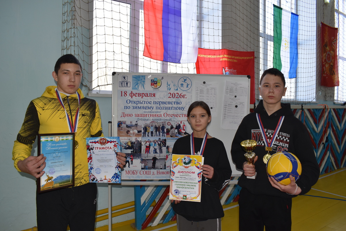 Спортивную инициативу поддержали семь школ В преддверии Дня защитника Отечества в Кадыргуловском сельском поселении состоялось открытое первенство по-зимнему полиатлону. Площадкой его проведения стала школа деревни Новоянбеково. В соревнованиях приняли участие учащиеся школ № 7, деревень Сергиополь, Новоянбеково, сел Чуюнчи, Чуюнчи-Николаевка, Вперед и Романовка. В состав каждой команды входили три участника: два юноши и девушка. Полиатлон - это комплексный вид состязаний, объединяющий дисциплины из разных направлений. В данном случае юношам и девушкам предстояло показать свою физическую форму и меткость в стрельбе из пневматической винтовки, отжимании от пола/подтягивании на перекладине и лыжной гонке. Дистанция по этой дисциплине составляла для девушек один, а для юношей - два километра. Спортивное мероприятие началось с общего построения и исполнения государственных гимнов. - Это первенство проходит у нас не случайно. Наша школа всегда была в лидерах спортивной подготовки по зимни