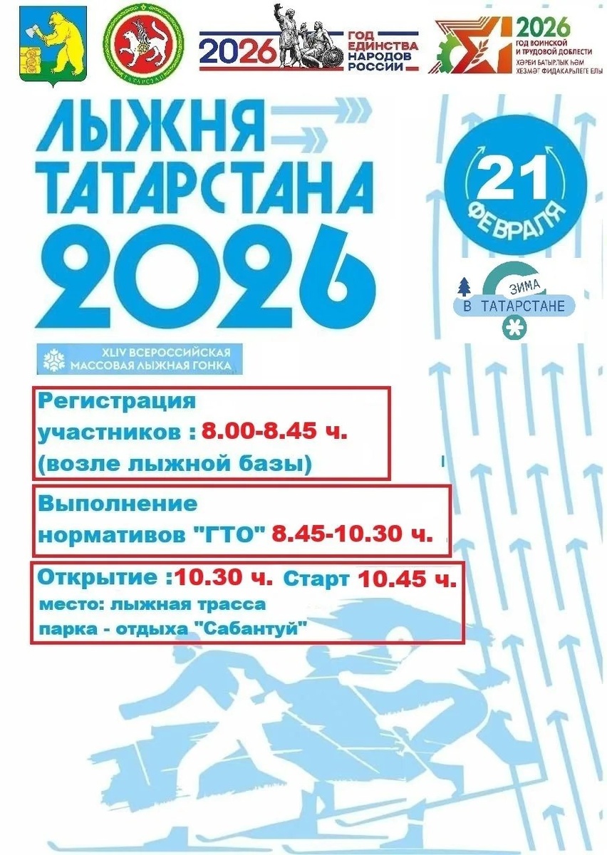 21 февраль көнне районыбызның "Сабантуй" ял паркындагы чаңгы трассасында "Россия чаңгы юлы-2026" кысаларында, "Татарстан чаңгы юллары-2026" массакүләм спорт акциясе узачак.