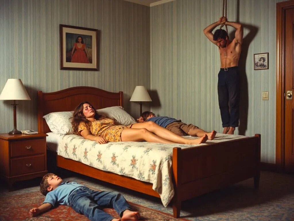 В кухне царил ледяной порядок. На столе — лист бумаги, исписанный неровным почерком. Под потолком — верёвка. На полу — опрокинутый табурет.