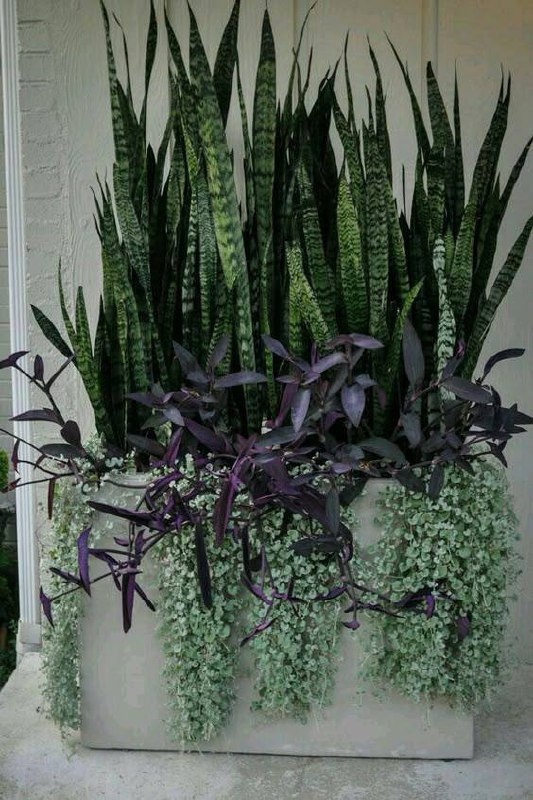 для модного сочетания текстур! Зеленый микст: Нежность, струение и характер 🌿 Решила поселить вместе три совершенно разных растения, и, кажется, это любовь! В одном кашпо уживаются: ✨ Традесканция — даёт яркие акценты и легкую небрежность. 💧 Дихондра — струящийся водопад из мелких "монеток" создает объем. 🗡 Сансевиерия — строгая вертикаль и несгибаемый характер, чтобы держать всю композицию в тонусе. Почему это работает: ✔ Всем нужен примерно одинаковый полив (умеренный). ✔ Прекрасно чувствуют себя при ярком рассеянном свете. ✔ Сансевиерия следит за порядком, пока традесканция и дихондра создают творческий хаос. Заказать ФитоДизайн, консультация о правильном озеленение @atashasilina #озеленение #коммерческоеозеленение #фитодизайн Идеальный квартет для тех, кто любит зелень, но не готов к сложному уходу. Как вам такое трио? 👇