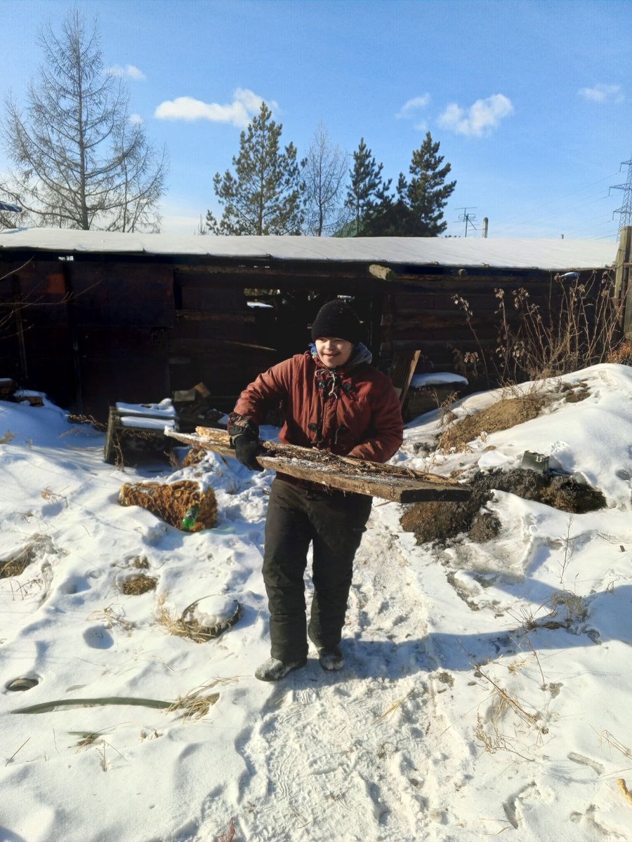 А мы сегодня отдыхаем! Если кто не знает, 18 февраля 2026 года объявлен первым днём Бурятского Нового года по лунному календарю – праздником Белого месяца «Сагаалган». С 2014 года этот день стал официальным нерабочим днем в Забайкальском крае. Празднуют его не только буряты, но и представители всех народов, проживающих в регионе. Традиционные гулянья проводятся на площади Ленина в центре города. Там можно познакомиться с национальной кухней, поучаствовать в национальных играх и забавах, посмотреть концерт. Но мы сегодня никуда не поехали, у нас были свои планы. Мужу подкинули работу, ему не до поездок. Доча прибежала в 12 часов, оставила гулять собак во дворе и пошла работать на участке. Погода сегодня отличная, солнечно, безветренно и всего -5. Сава быстро оделся и побежал помогать. А я только рада, хоть погуляет пару часиков на свежем воздухе. Помощь от сына уже весьма ощутимая. Силенок много, доски таскает, как здоровый мужик. Он и нам всегда говорит: " Я силач, качок!" Ну раз сил