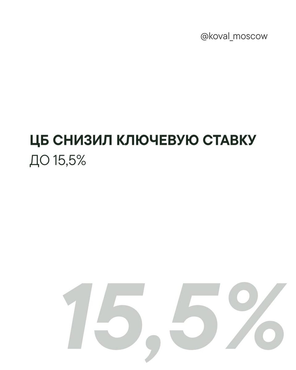 ЦБ снизил ключевую ставку до 15,5% ☑️