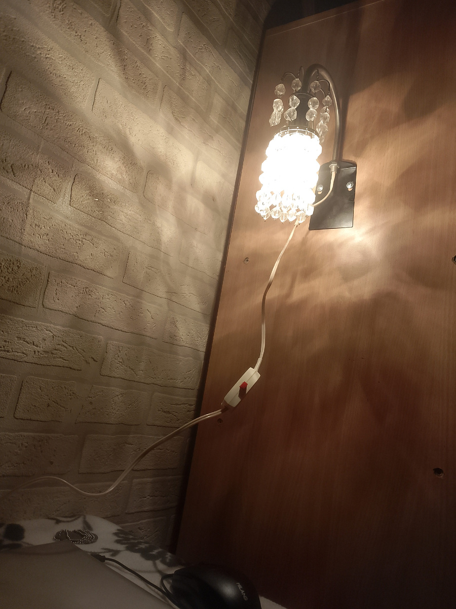 Кстати о бра. Я сегодня его сама прикрепила. Правда получила вечером словесных люлей. Типо старье и ещё на шкаф.