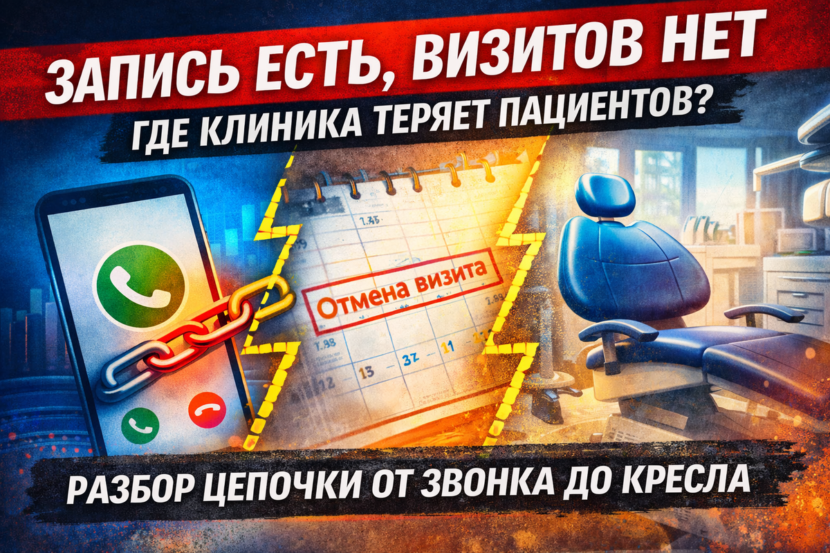 В стоматологии очень распространённая картина: поток есть, телефоны звонят, администраторы записывают пациентов. В расписании — кресла заняты. А в конце месяца собственник смотрит на цифры и чувствует, что результат ниже ожиданий. Проблема в том, что большинство клиник считают записи, но не считают переходы между этапами. И именно в этих переходах теряются пациенты — и деньги. По отраслевой аналитике, от 25 до 40% входящих обращений не превращаются в запись. Причины банальны: неуверенный администратор, отсутствие конкретного предложения, слишком «общий» разговор, нет фиксации следующего шага. Но главная управленческая проблема в другом: клиники редко анализируют эту точку. Звонок состоялся — записи нет — разговор забыт. Если не считать: И это уже первая иллюзия: «поток нормальный». На самом деле он может «сыпаться» на входе. Запись не равна визиту Пациент записался — но это ещё не гарантия, что он придёт. В среднем по рынку доходимость первичных пациентов колеблется в диапазоне 75–90%.