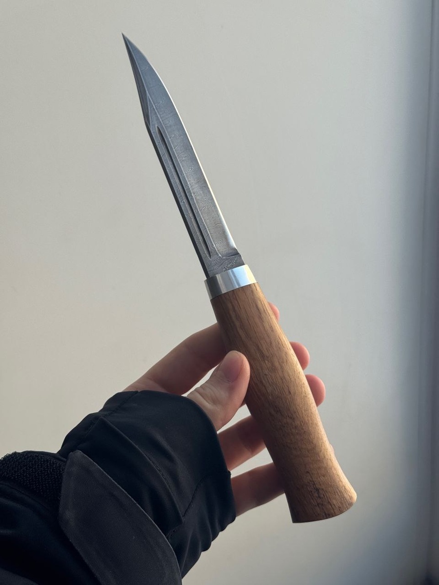 Нож разведчика-2,сталь Дамаск, рукоять дуб отправляется Александру в г. Серпухов