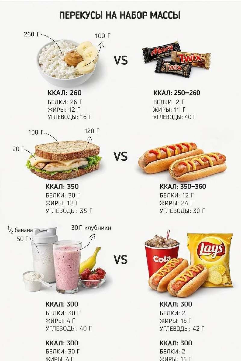 🫡 1️⃣ Творог, банан и арахисовая паста 🔜 ~260 ккал 🔜 Белки: 26 г 🔜 Жиры: 12 г 🔜 Углеводы: 16 г 📌 Полезные жиры, медленный белок, угли 2️⃣ Сэндвич с курочкой и сыром 🔜 ~350 ккал 🔜 Белки: 30 г 🔜 Жиры: 12 г 🔜 Углеводы: 35 г 📌 Вкусно и точка быстро 3️⃣ Протеиновый коктейль с фруктами 🔜 300 ккал 🔜 Белки: 30 г 🔜 Жиры: 4 г 🔜 Углеводы: 40 г 📌 Быстро усваивается, удобно после тренировки #питание@ne_zhirno