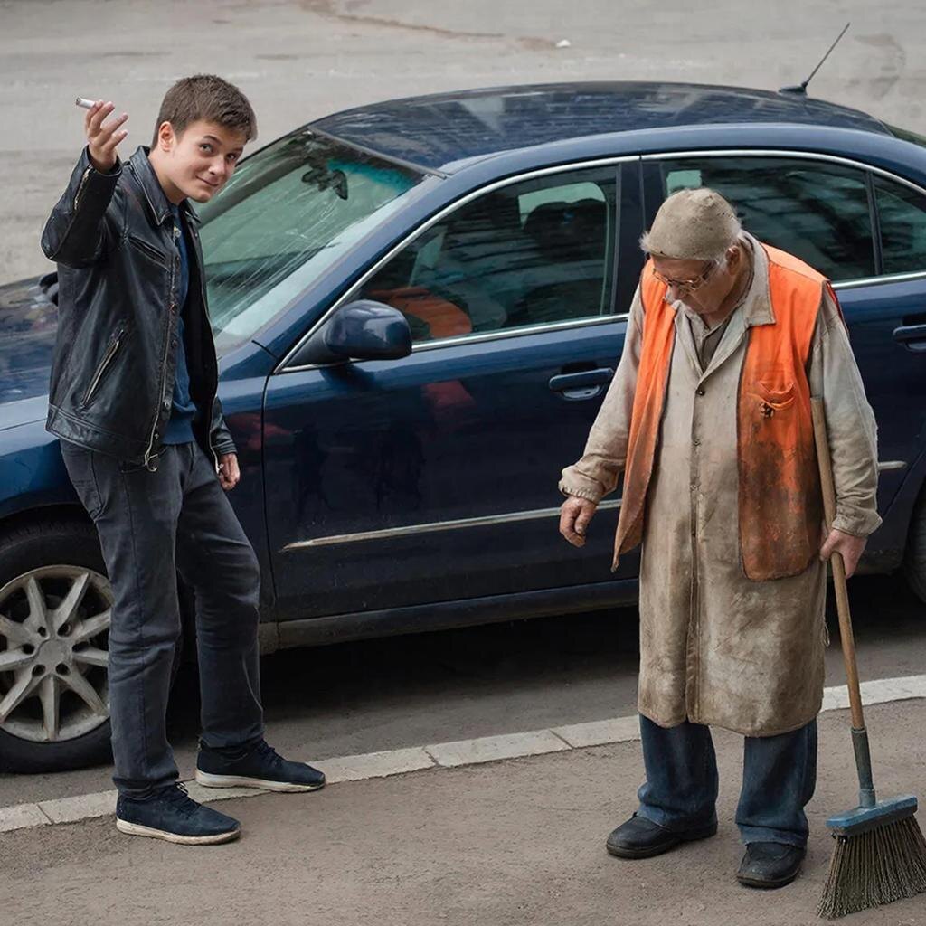 Дима молчал, не в силах вымолвить ни слова. Он смотрел на отцовские руки, сжимающие метлу, на его старую куртку, на грязь под ногтями. В голове не укладывалось, что этот человек, стоящий у помойки, — его отец.